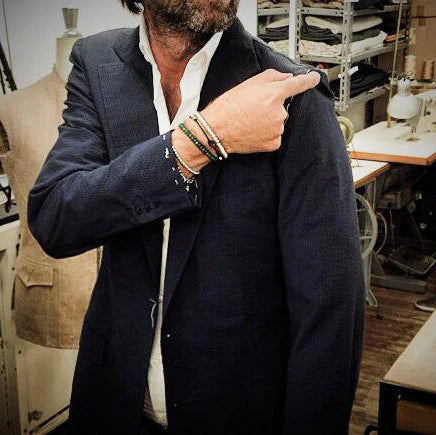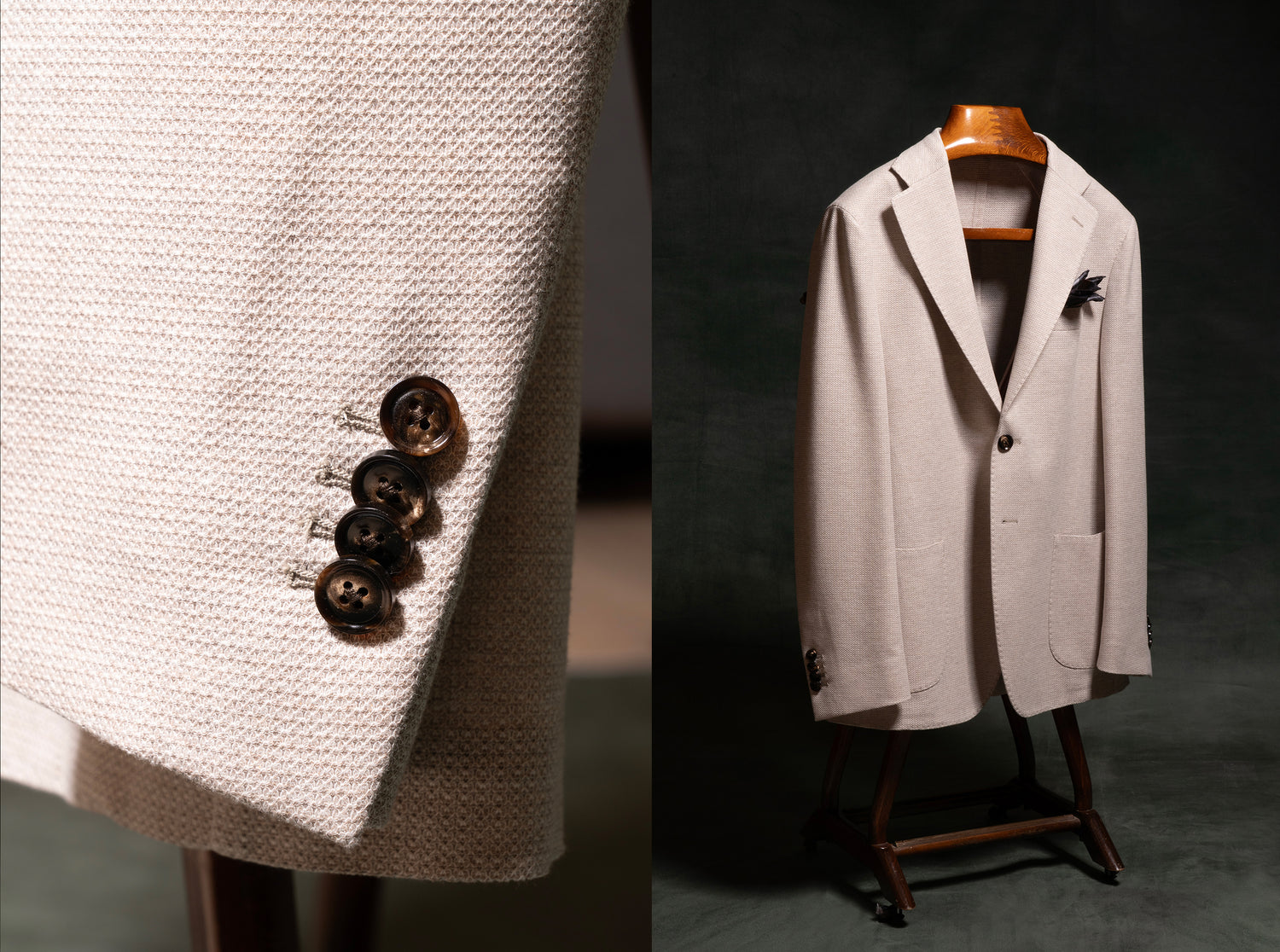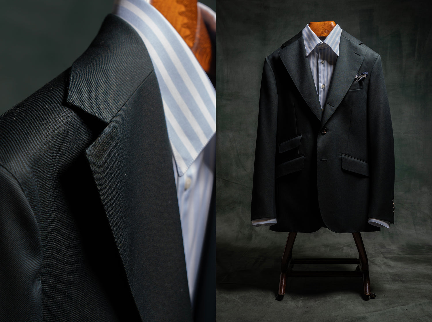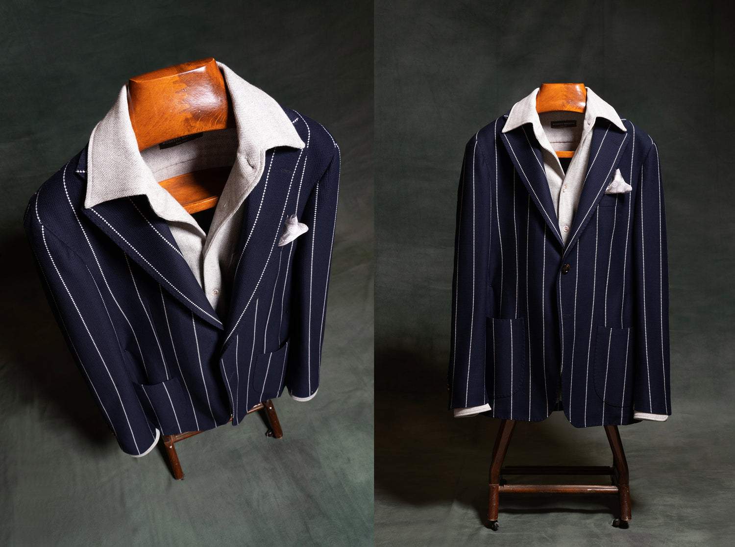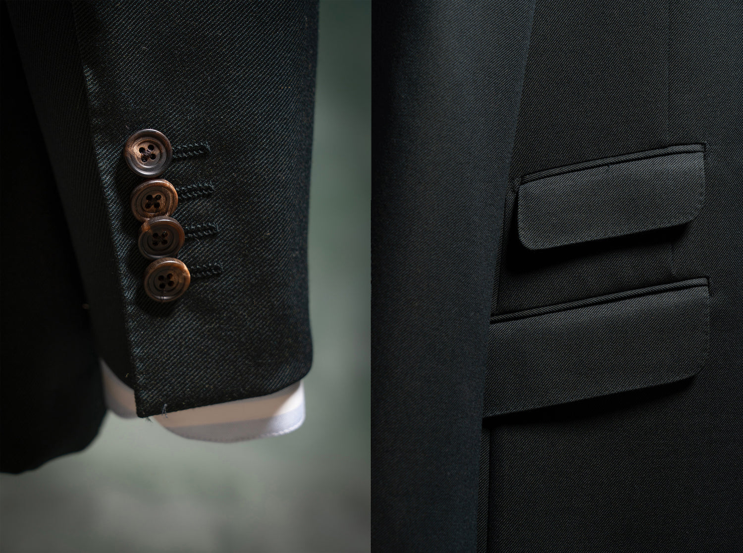 Una giacca che veste a pennello nei punti strategici come le spalle e le maniche, con bottoni e fodera cuciti con maestria, un pantalone che avvolge la vita seguendo le linee del corpo senza segnarle e che cade perfettamente sulle scarpa: dettagli questi che solo le mani sapienti di un sarto esperto sanno curare e rendere perfetti.