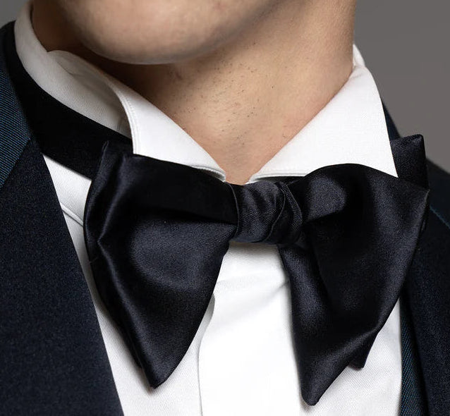 La sua forma inconfondibile si abbina perfettamente al papillon, alla cravatta oppure al plastron in seta.