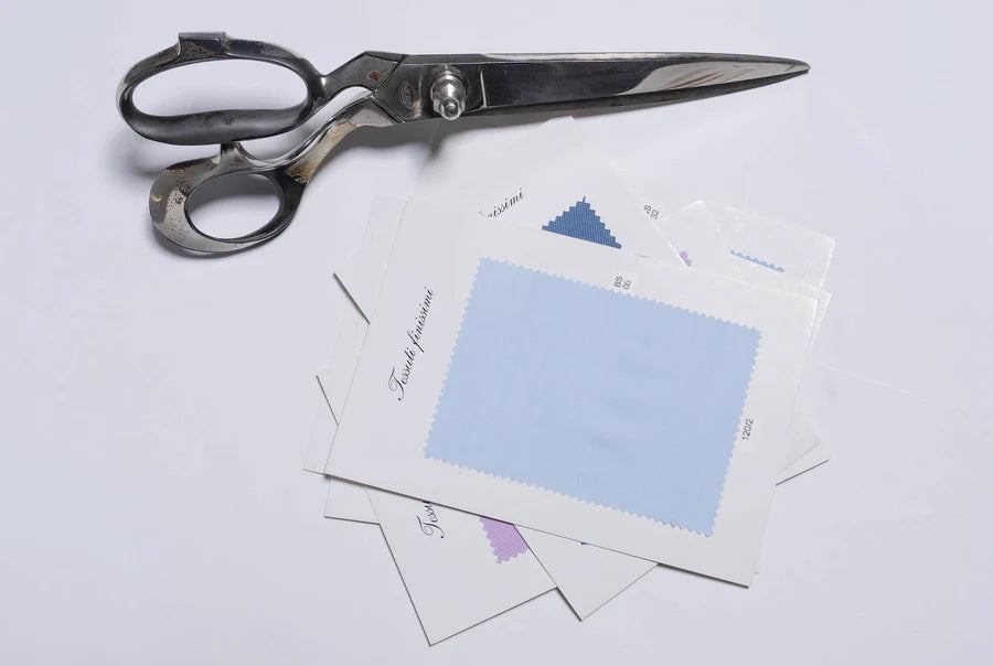 Camicia da uomo su misura dallo stile business raffinato, pensata per chi cerca eleganza e cura sartoriale in ogni dettaglio. L'impuntura a mano, i bottoni in madreperla con cucitura a giglio, la mosca laterale e le cucitura del fianco a busto chiuso esprimono maestria artigianale e raffinatezza senza tempo.